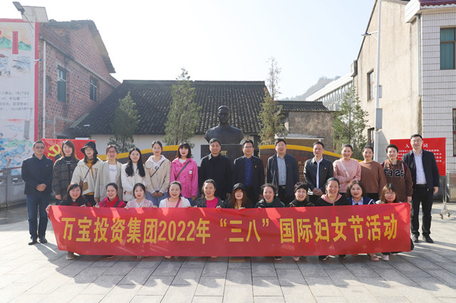 陽春三月,春風(fēng)送暖。3月8日上午,萬寶投資集團到賀國中故居開展“三八”國際婦女節(jié)活動。董事長梁養(yǎng)賢、總經(jīng)理徐業(yè)波、監(jiān)事會主席伍岳、副總經(jīng)理謝緯、紀委書記葛旭華及公司全體女職工參加。