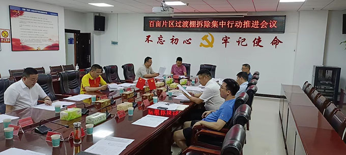 百畝片區(qū)過渡棚拆除集中行動推進會議現場