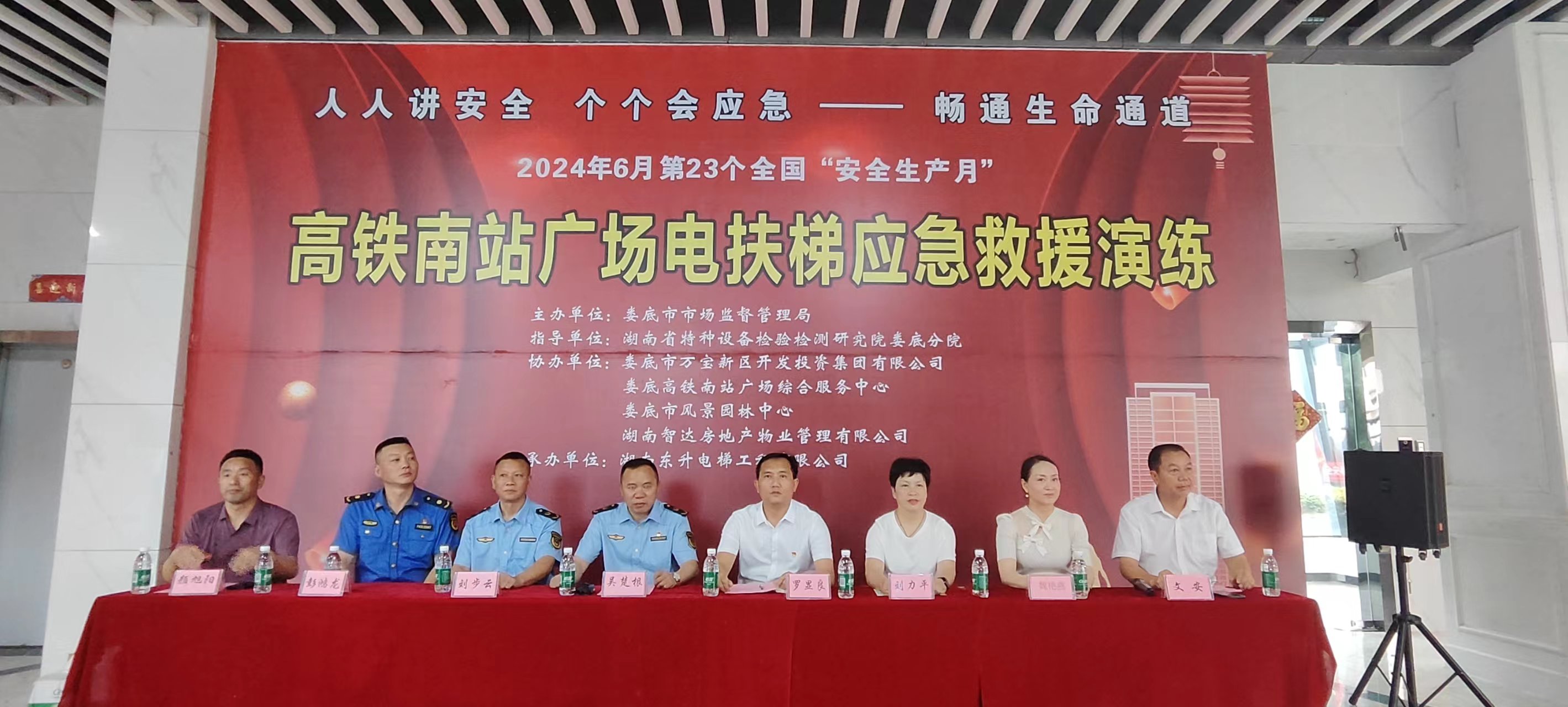 為增強(qiáng)安全生產(chǎn)意識(shí),聚焦應(yīng)對(duì)特種設(shè)備事故的快速反應(yīng)和高效處置能力,6月17日上午10點(diǎn),我市在高鐵南站廣場(chǎng)舉行電扶梯應(yīng)急救援演練。本次活動(dòng)由婁底市市場(chǎng)監(jiān)督管理局主辦,婁底市萬(wàn)寶新區(qū)開發(fā)投資集團(tuán)有限公司、婁底市高鐵南站廣場(chǎng)綜合服務(wù)中心、婁底市風(fēng)景園林中心、湖南智達(dá)房地產(chǎn)物業(yè)管理有限公司協(xié)辦,湖南東升電梯工程有限公司承辦,湖南省特種設(shè)備檢驗(yàn)檢測(cè)院婁底分院進(jìn)行現(xiàn)場(chǎng)指導(dǎo)。