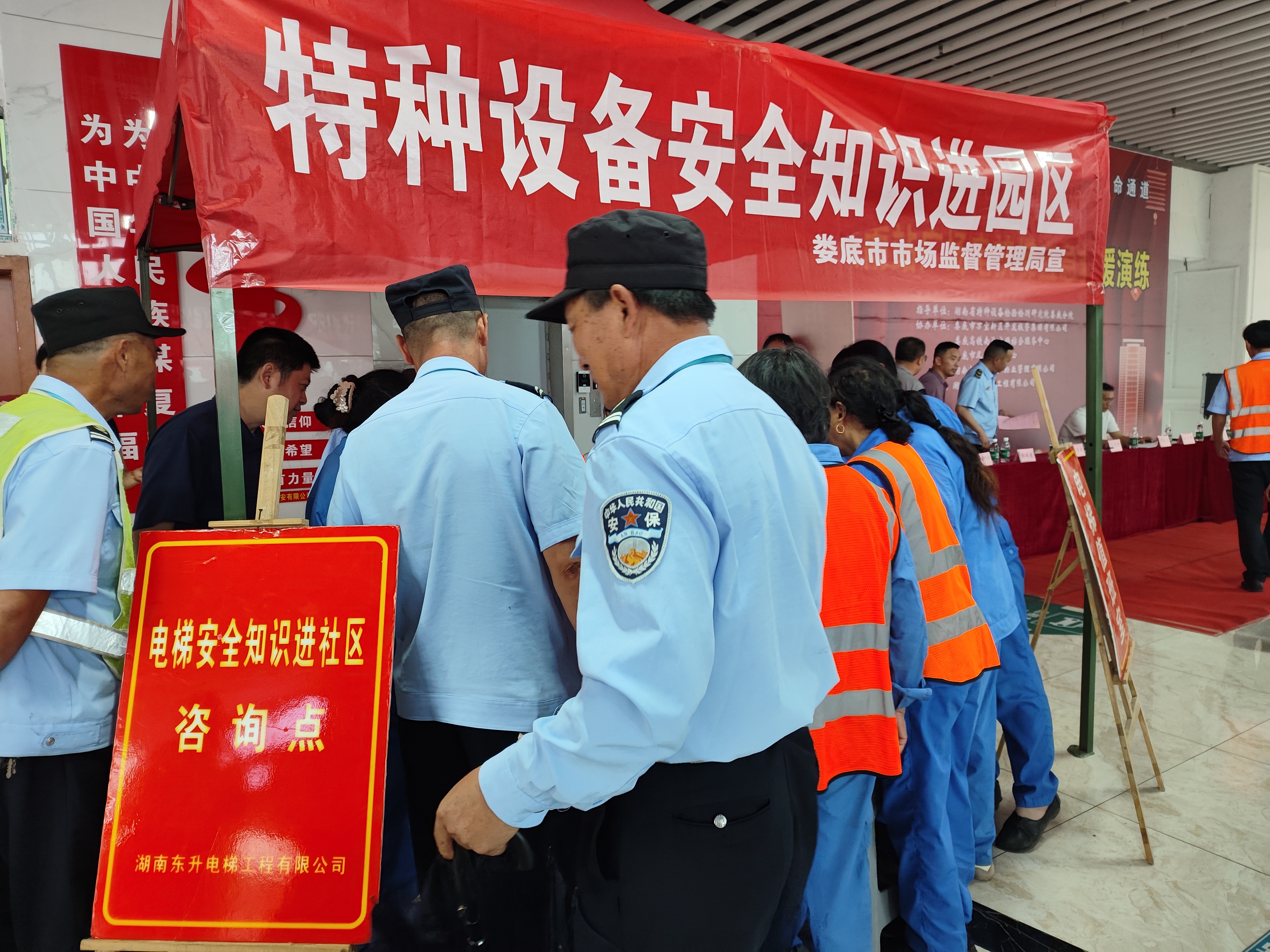 演練結(jié)束后現(xiàn)場(chǎng)還設(shè)置咨詢點(diǎn)現(xiàn)場(chǎng)接受群眾咨詢,邀請(qǐng)維保單位和特種設(shè)備檢驗(yàn)檢測(cè)單位專業(yè)技術(shù)人員耐心解答電梯故障、困人、滑梯等問(wèn)題。