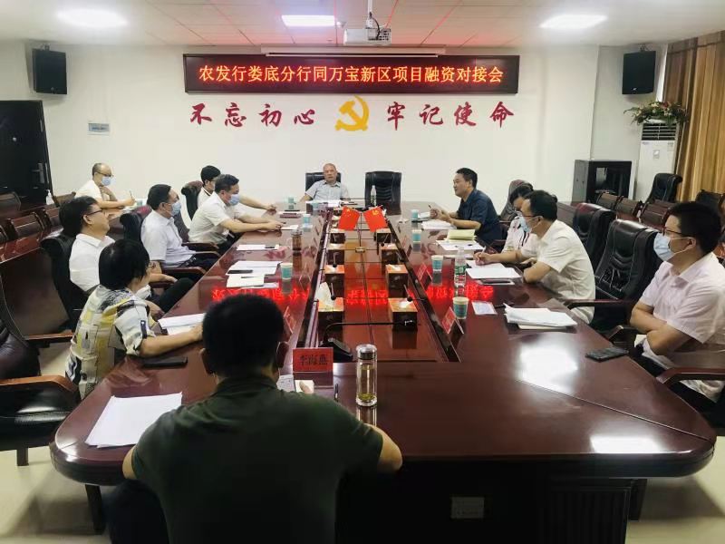 梁養(yǎng)賢首先就萬(wàn)寶投資集團(tuán)的融資情況作了簡(jiǎn)要介紹,提請(qǐng)市農(nóng)發(fā)行對(duì)萬(wàn)寶新區(qū)高新技術(shù)產(chǎn)業(yè)園、安置小區(qū)、片區(qū)開(kāi)發(fā)等項(xiàng)目提供融資支持。隨后,肖雄杰提出,要抓住政策機(jī)遇,推動(dòng)新區(qū)鄉(xiāng)村振興項(xiàng)目建設(shè),愿與農(nóng)發(fā)行達(dá)成全面合作協(xié)議。